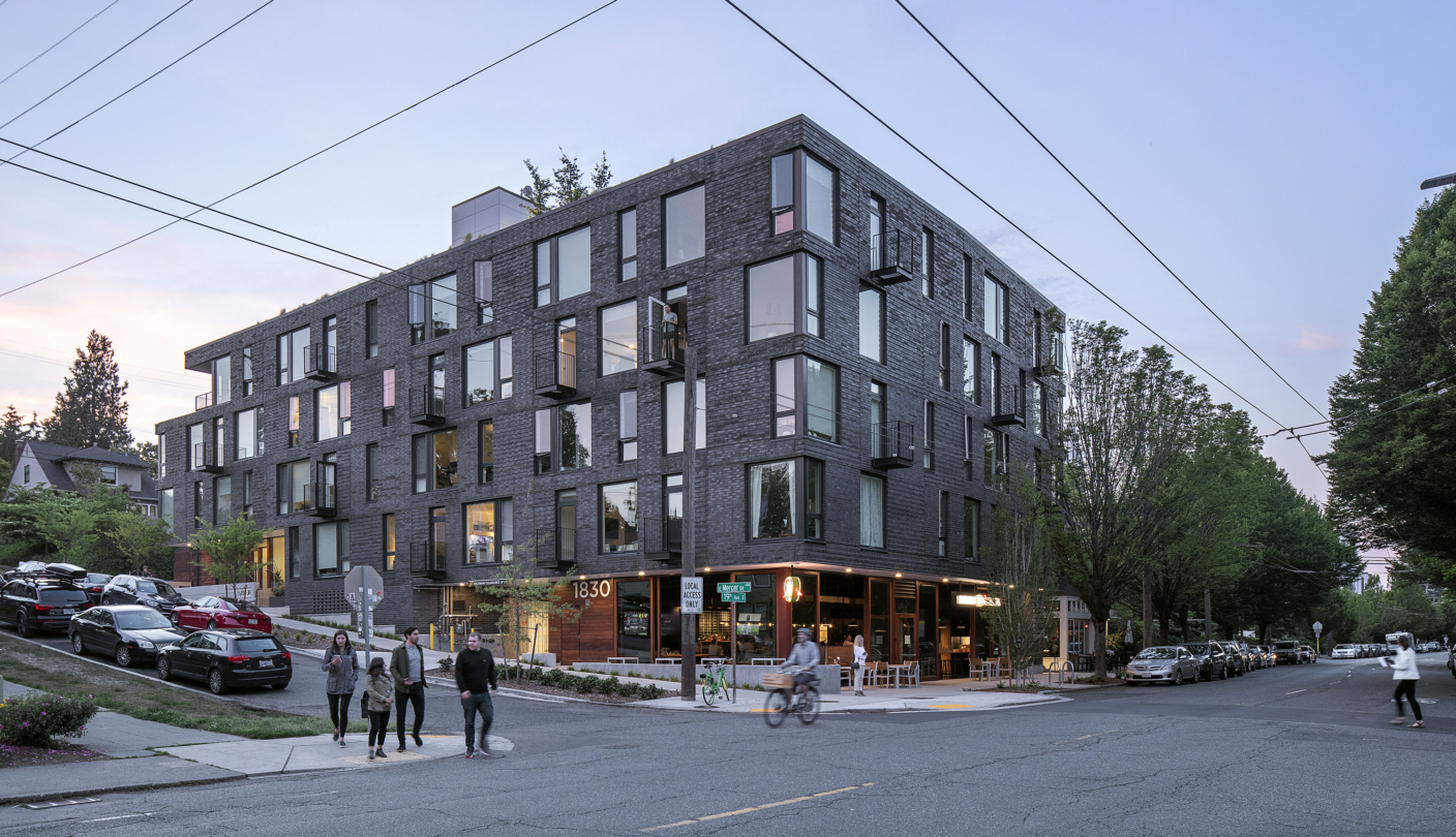 Tucked into Seattle’s Tangletown neighborhood, south of Green Lake, is a nondescript seven-unit apartment building. Built in 1948, the building includes no off-street parking spaces, taking up most of its 4,600-square-foot lot. With a Route 62 bus stop directly at its doorstep, residents living here can utilize 15-minute service to either Roosevelt Station in one direction, or Wallingford, Fremont, and Downtown Seattle in the other, seven days a week. Just across the street is a fourplex, built in 1951, that also features no off-street parking spaces.
