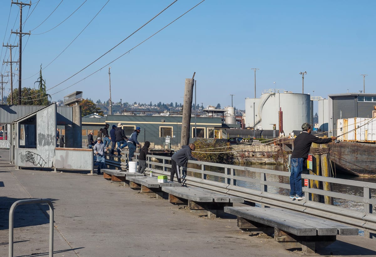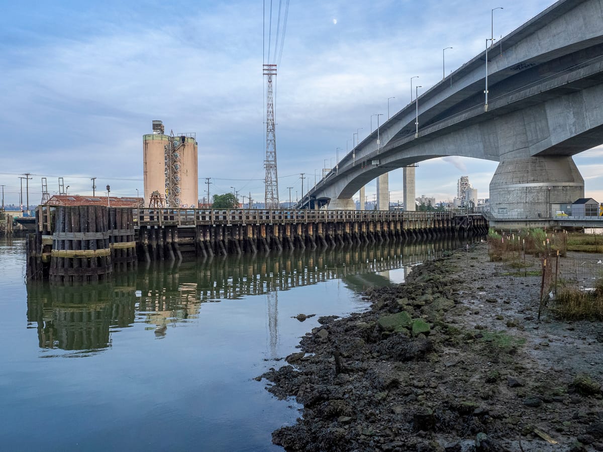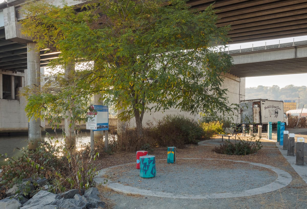 Spokane Street: Street Ends #13, #18, and #19Solitude is on hand at Southwest Spokane Street/Freeway (#13). Tucked beneath the West Seattle Bridge, the street end offers some magnificent views of our working waterfront if one looks to the north.Another pair of street ends, but of a different nature. This pair run parallel to the street and are not ends at all. Regardless, Southwest Spokane Street/Freeway (#18) and Southwest Spokane Street (#19) provide a popular fishing spot and unsurpassed views of Seattle’s main concentration of container terminals.West Marginal Way: Street Ends #22 and #23As it approaches Elliott Bay, the Duwamish River was straightened and dredged in order to accommodate the industrial uses that line its shore, and it becomes the Duwamish Waterway. Part of this legacy includes remediation of the decades-long dumping and leaching of toxic waste into the water; the dredges are an evocative reminder of past and current clean-up efforts.Southwest Alaska Street (#22) and SW Edmunds Street (#23) are both nestled within a lush riparian corridor. The northernly of the pair, #22, leads to a network of pathways that trace the waters edge. Southwest Edmunds Street gives access to the he?apus [this is the correct spelling] Village Park & Shoreline Habitat, a Port of Seattle park, highlighting an important cultural site along the shore of one of the last remaining bends of the Duwamish River before it was channelized.East Marginal Way: Street Ends #24 and #26, Street End #25 and Diagonal AvenuePublic access to the Duwamish is limited, and often has to squeeze itself between the dominant maritime and manufacturing uses. Although modest – a concrete slab and bench as well as controlling for invasive plants that limit access and views – South Oregon Street (#24) provides a significant break in the wall of its less accessible neighbors.Unlike many of its fellows, South Fidalgo Street (#26) offers distant views both of the aquatic and terrestrial environments where landward views are frequently blocked by fences and thick plantings that discourage the curious visitor’s attentions.When funding is available, street end shorelines like Diagonal Avenue South (#25) provide opportunities for intensive efforts in riparian restoration, including shoreline stabilization. The street end preserves access to the Diagonal Avenue South Public Shoreline Access. While not part of the SDOT program and not a street end, it is none-the-less a splendid park that is impeccably manicured and welcoming.South Park: Street Ends #28, #34, #35, and #37Furnishings, recreational access, shoreline and landscape improvements – all are priorities of Friends of Street Ends and all can be found at South Michigan Street/1st Avenue Bridge (#28). While not bucolic as the shorelines along Lake Washington or Puget Sound, the amenities provided at #28 more than address the challenges of its being situated below a busy bridge.Seattle Street End #34, Riverside Drive, provides a small viewing area tucked among restored native plantings. Nearby, one of the more developed Duwamish shorelines is found at 8th Avenue S/S Portland Street (#35). This street end includes water access, terraced and bench seating, and art. It is also linked to Street End #34 via a gravel path. Which brings us to Seattle’s farthest south street end, #37 at 10th Avenue South/South Kenyon Street. It has open, unobstructed views, perfect for watching ships pass.