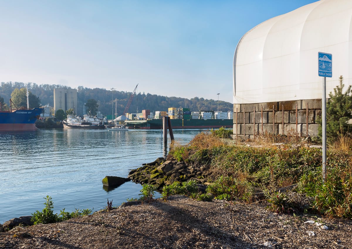 Most of the street ends featured here are adjacent to maritime and industrial uses and include views of shipping, dredging, and land-based industries such as cement manufacturing. Chances to engage the Duwamish River via restored shorelines and habitat are also possible.
