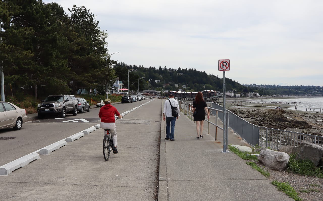 A neighborhood street alongside a popular natural beach in West Seattle was transformed early this month with concrete barriers that send a clear message about who the City is prioritizing with the design of the street. The changes along Beach Drive SW on the south end of Alki Point, represent the latest attempt by the Seattle Department of Transportation (SDOT) to provide more space for walking, biking, and rolling, after a pandemic pilot program proved popular.