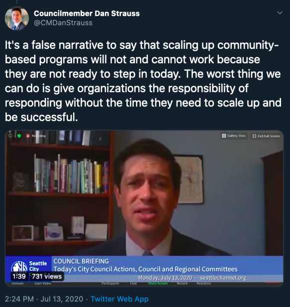 Councilmember Lisa Herbold, chair of the City Council’s Committee on Public Safety and Human Services, also defended the council’s current position on the budget on Twitter. “The Council is continuing to work through the SPD budget and we are in the very beginning stages of developing proposals,” wrote Herbold.