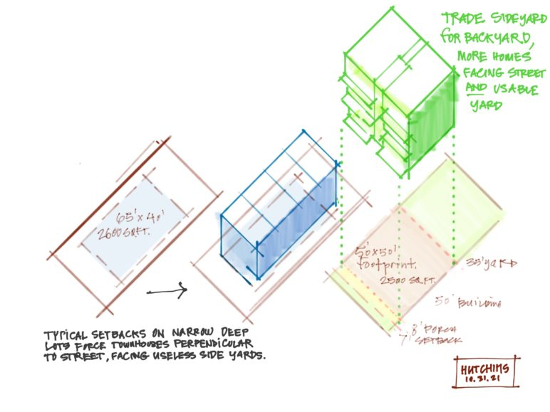Point access, single stair sixplexes are something legal to build by building code, the problem is we have nowhere to put them. The ability to stack flats with shared circulation gives us housing that meets accessibility needs, allows people to age in place, and doesn’t wreck a small footprint by putting in a stair in every home like we do with rowhouses.