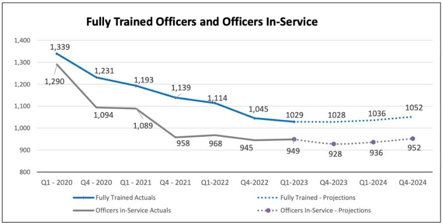 One of the goals of the work is to alleviate the burden on officers, an ever-present concern as SPD announced recently that they’re on track to once again lose more officers than they can hire this year. This will be the fifth straight year SPD will experience a net loss of officers. The last year they hired more officers than they lost was 2019, although they also lost more than they hired in 2018, pre-dating the Covid-19 pandemic. A report shows the loss in 2018 was driven by many factors, most prominently higher retirements and more younger officers who didn’t live in Seattle leaving to be police officers elsewhere in the region.