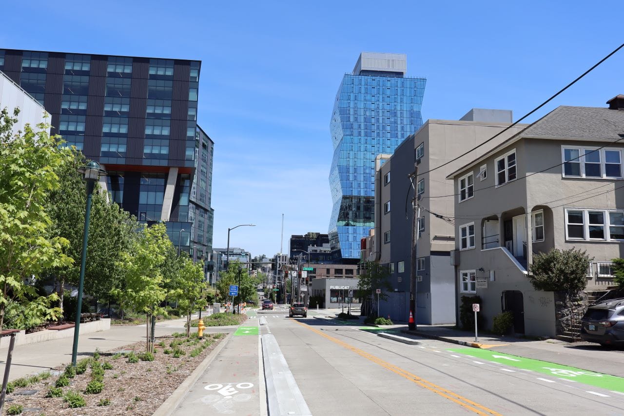Seattle recently reached a milestone as the first protected intersection in city history opened at Dexter Avenue and Thomas Street. People biking, scooting, walking, rolling, and driving through this busy intersection are now interacting in a new way that research, and implementation in cities across the country, have shown cuts down on the risk of collisions, especially high-speed ones that cause serious injuries or deaths.