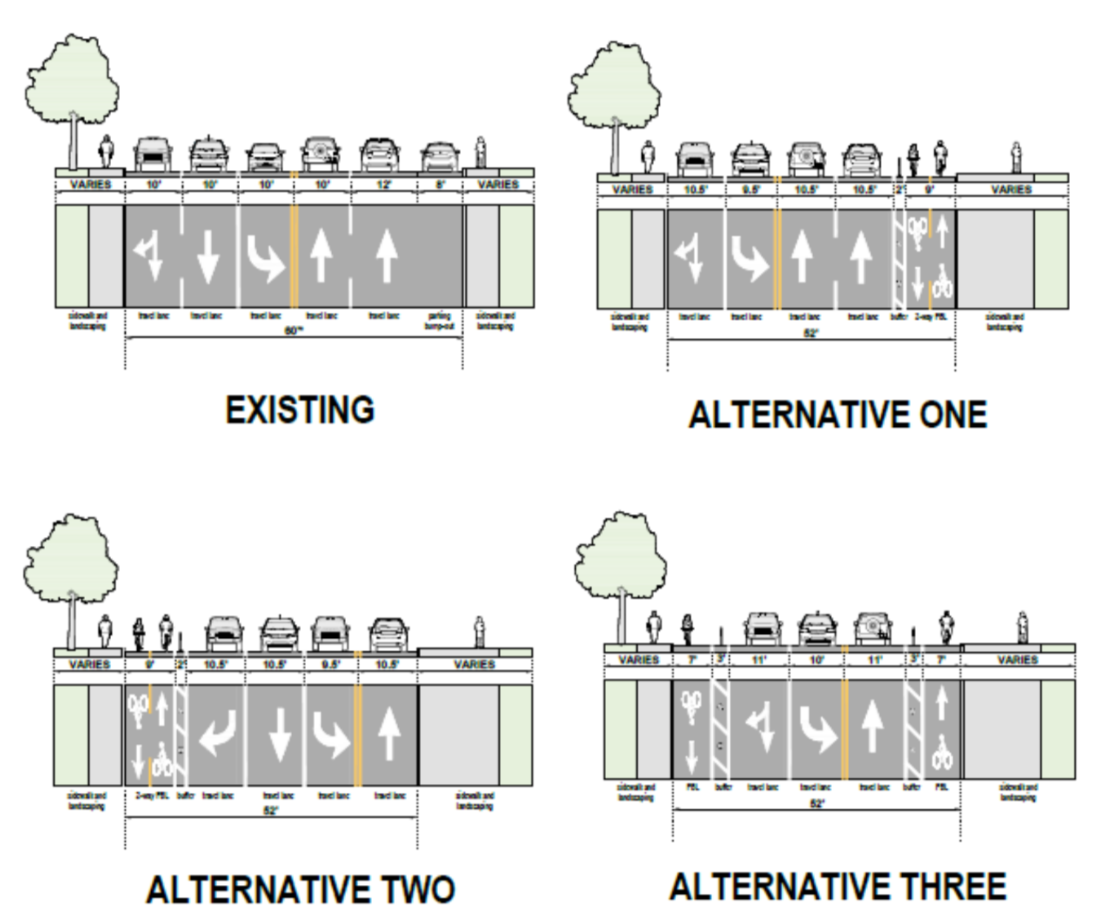 In 2020, SDOT asked consultant Toole Design to examine how protected bike lanes might be implemented on the entirety of MLK. That study informed the design of the connection that opened this summer, but the rest of the study — from Mount Baker to Rainier Beach — has been sitting on a shelf. Toole noted “notable advantages and drawbacks” to all options on the table, but at a high level the project was found to be very feasible.