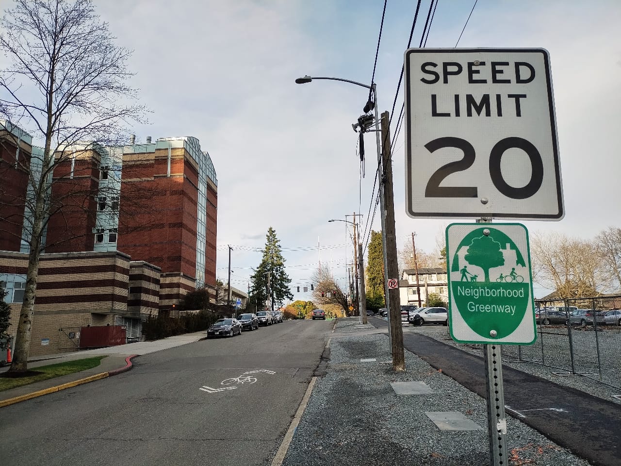 Jenny Hu lives in North Seattle. As someone who gets around by bike, she regularly uses the city’s network of neighborhood greenways to traverse the city: non-arterial streets intended to be priority corridors for pedestrian and bike travel. 39th Avenue NE, which runs north and south across the Wedgwood neighborhood, is one of those greenways, one she uses to commute to work and do errands. For Hu, using the neighborhood greenway comes with considerable benefits, but also some drawbacks.