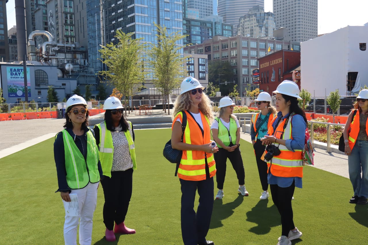 “When we were envisioning the design for this space, it’s really the heart of the waterfront,” Angela Brady, the Director of the Seattle Office of the Waterfront, Civic Projects, and Sound Transit said this week at a press preview of the new park space. “This is kind of as central as you can get. And because we wanted to make sure the proximity of the public restroom was close enough to the playground area and really the heart and center of the waterfront.”