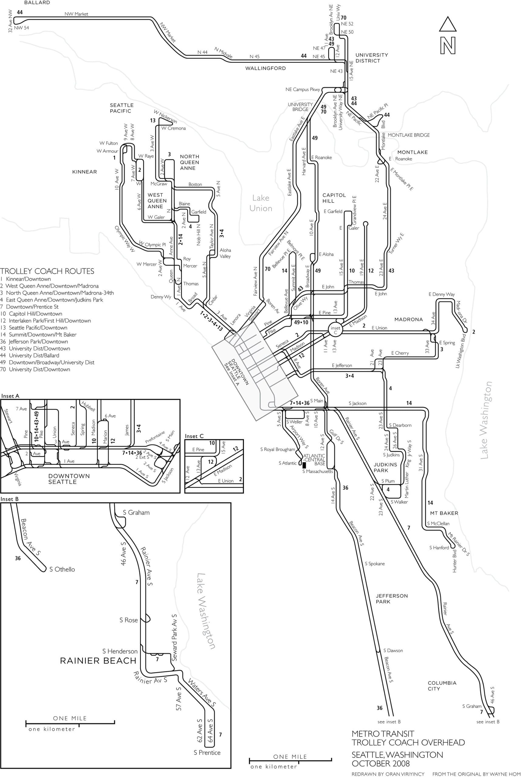 Metro’s trolleybus fleet has somewhat faded into the background as the agency has been hard at work implementing a broader transportation electrification strategy focused on still-unproven battery-electric buses. The King County Council has set of goal of electrifying the bus fleet and reaching 100% zero-emission vehicles by 2035. Seattle’s trolley network hasn’t expanded in decades, with a plan to add trolley wire to the path of the Route 48 between the U District and Mount Baker, still in development a full decade after the City of Seattle completed a study on the idea.