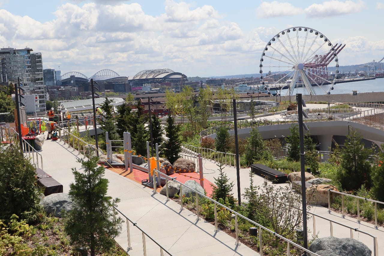 On the heels of these elements are final pieces of the project, including a new set of all-gender restrooms at the foot of Union Street, which will be staffed from 7am to 10pm daily. Pier 58, the former home of Waterfront Park, is being rebuilt to include a new children’s playground and additional public space at the water’s edge. Meanwhile, up the bluff at Pike Place Market, a newly rebuilt Victor Steinbrueck Park is expected to open in August.