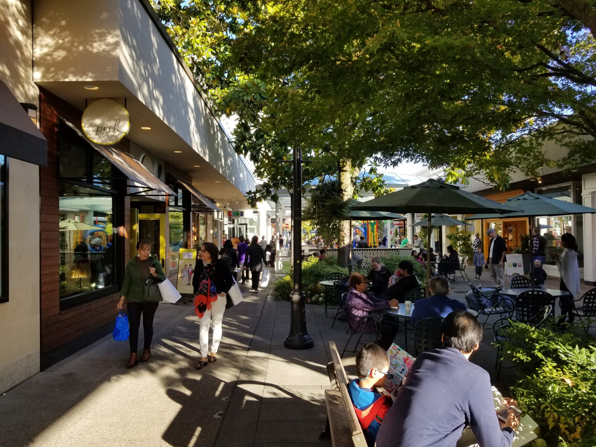 - The examples above from the U Village show a more park-like atmosphere, rather than a plaza, despite being surrounded by retail. It appears to be a very effective combination.
