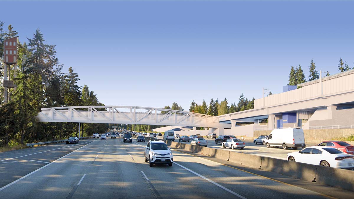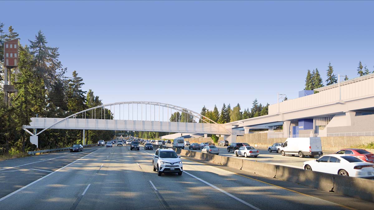 Shoreline is planning a new pedestrian and bicycle bridge across I-5 to connect separated communities and transit riders to the Link light rail station opening in 2024. An online open house highlights several design options that the City is considering, including conceptual layouts, renderings, and tradeoffs. The planned bridge will be located at NE 148th St, connecting the Parkwood and Westminster Triangle neighborhoods. When the Lynnwood Link extension opens, a light rail and bus station will open on the east side of I-5 situated between NE 145th St, NE 148th St, and 5th Ave NE.