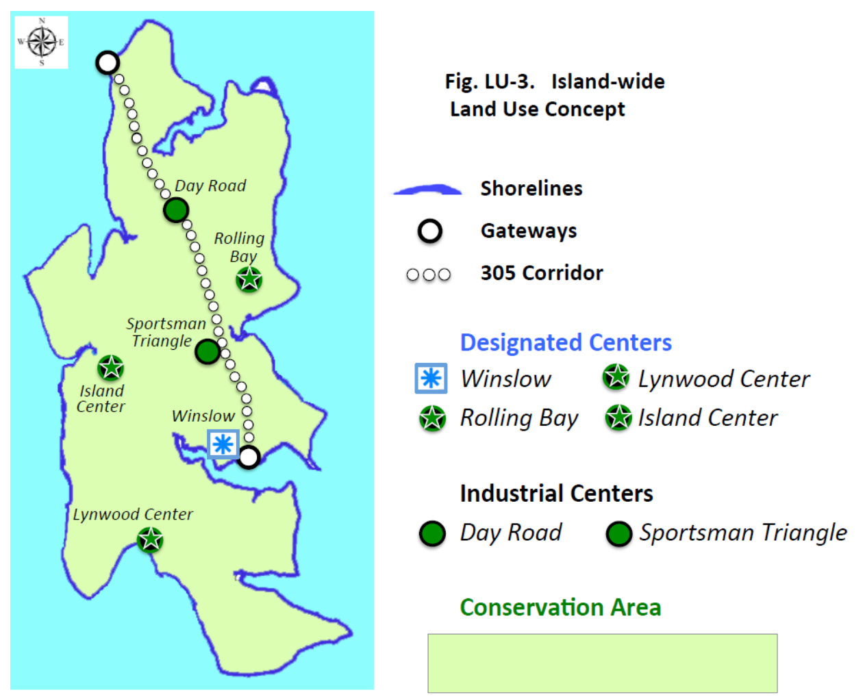 Increasing housing and amenities near the commercial nodes throughout Bainbridge aligns with the strategy that the city adopted in its 2022 Sustainable Transportation Plan, which prioritizes creating multimodal connections to the same centers, making it easier to meet one’s daily needs without a car.