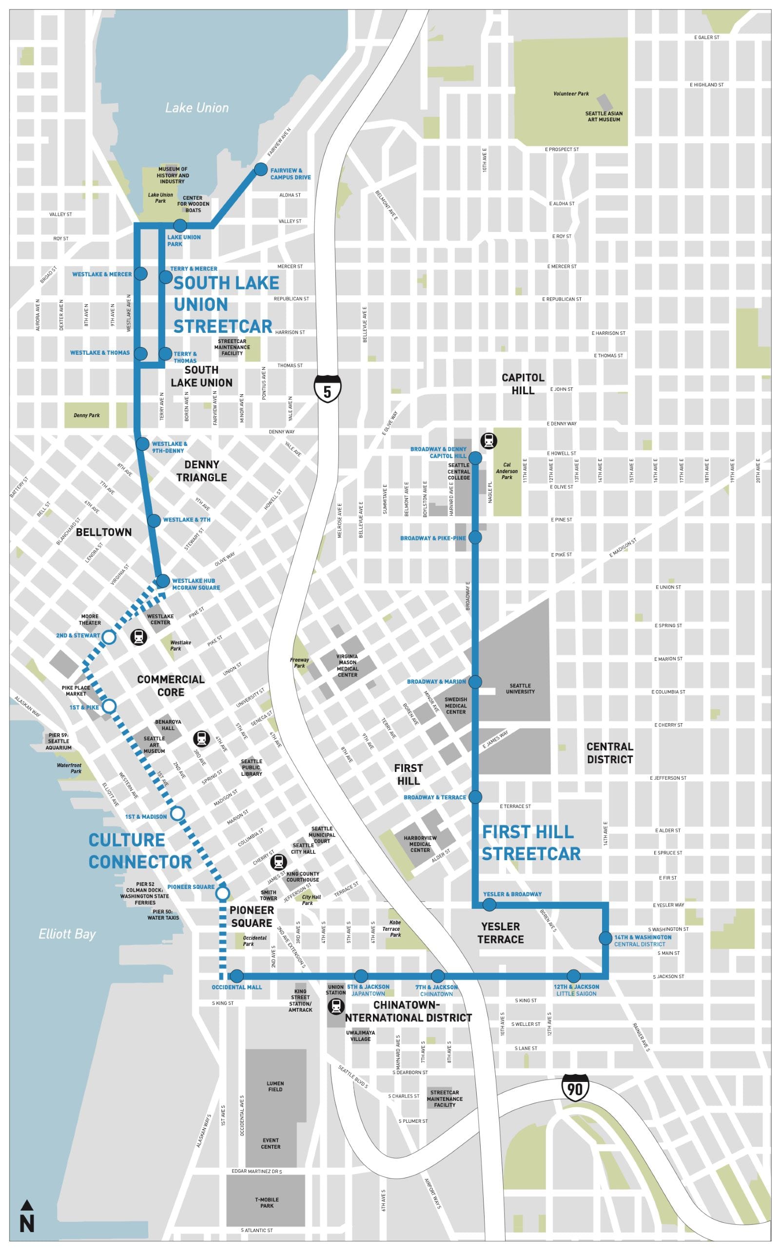 Metro has encouraged transit riders to use alternate bus service while the streetcar is offline. The RapidRide C Line, Route 40, and Route 70 also serve the Westlake Avenue corridor, usually at greater frequencies. The SLU streetcar runs from Westlake Square (adjacent to light rail and monorail service at Westlake Station) to Fred Hutchinson Cancer Center, cutting through Amazon’s corporate campus on the way.