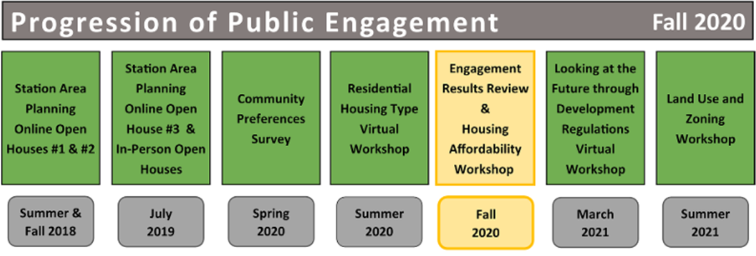 The workshop begins to end on a note on the potential impacts of the light rail stations. While positive impacts like reduced reliance on automobiles are noted, the workshop anchors the importance of current planning efforts with light rail accelerated rising housing costs and resulting displacement. Those two negatives impacts are escalated for mitigation and resolution. Preserving existing affordable housing and supporting the development of diverse dwelling sizes and types to meet the needs of the current and future population will be a part of the Urban Core Subarea Plan’s guiding principles. Strategies within the plan and potential land use and zoning changes will be instruments to execute those actions, and the feedback from the community will be a factor in developing those instruments.