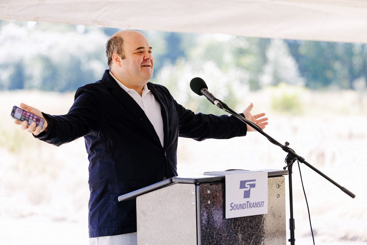 Sound Transit Systems Expansion Committee chair Claudia Balducci attended the groundbreaking and stressed the need for new rider carrying capacity and greener transport options. The agency has set a goal of reaching a zero-emissions fleet by 2050.