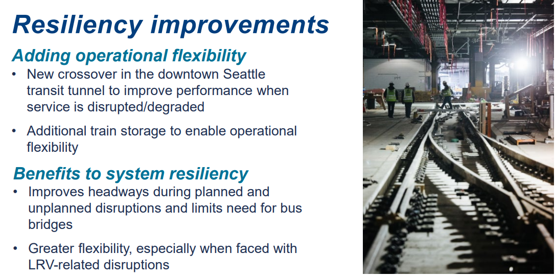 Sound Transit knows that the Downtown Seattle Transit Tunnel is an Achilles heel of the entire network right now, with a lack of crossover tracks and other outdated infrastructure creating real liabilities for future expansion projects that depend on that tunnel. Those upgrades are going to cost money — and they could end up being more expensive and more painful if the agency waits to do that work, kicking the can down the road.