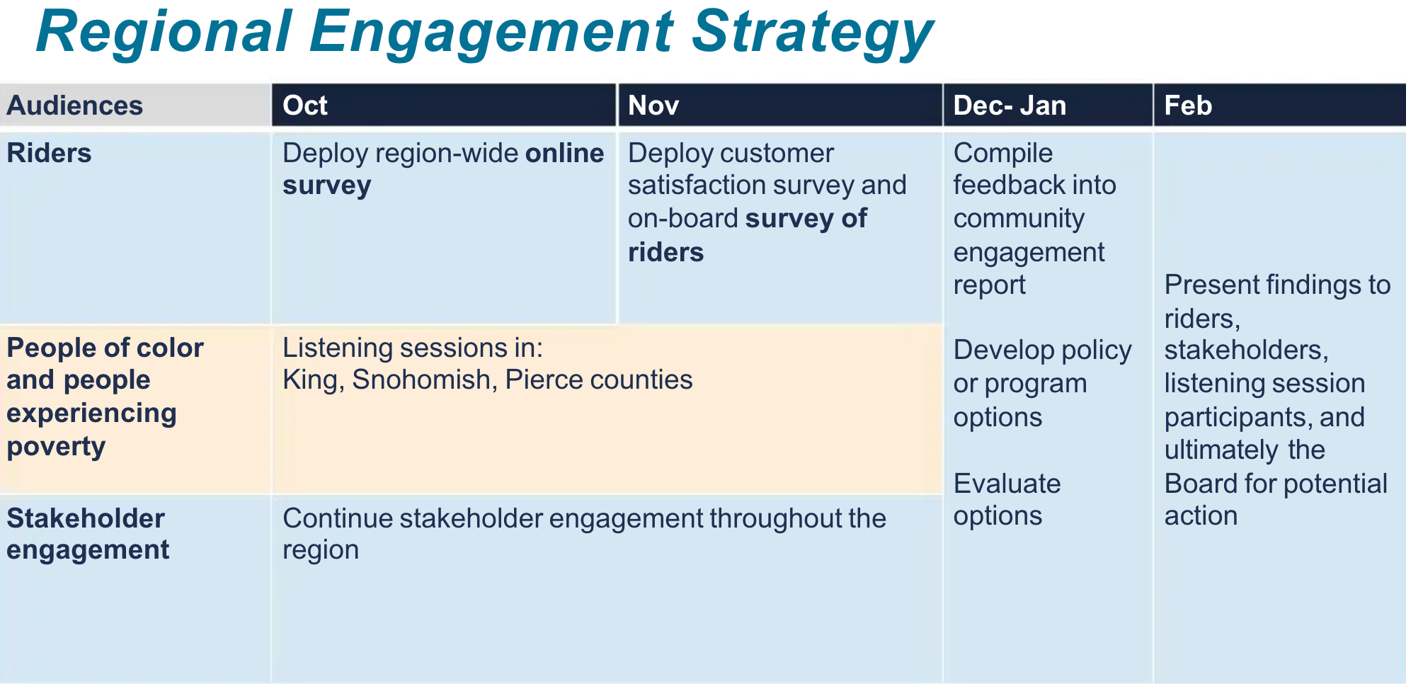For the part of fare enforcement officers, Sound Transit is evaluating options rethinking things like role responsibilities and priorities, inspections on certain days (e.g., the first day of the school year, severe weather conditions, and other warranted circumstances), and training. A particular emphasis for revised training could include better customer service approaches and enhanced anti-bias information.