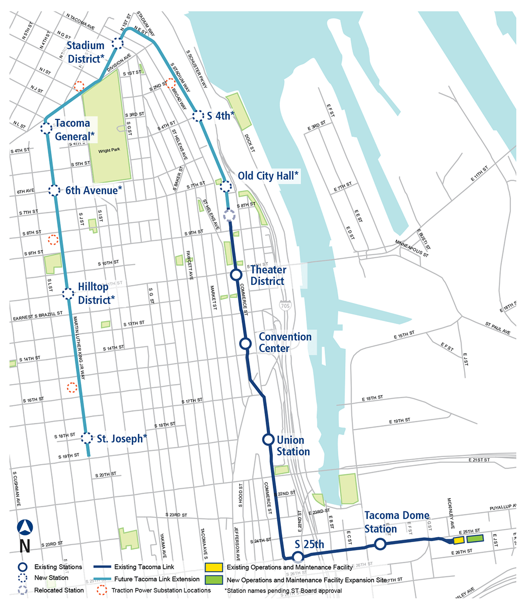 For years, Sound Transit has been able to operate the line fare-free. Fares were going to be implemented in 2014, but a fare subsidy program with the Downtown Tacoma Partnership staved off fares and has been in place since. The line being quite short has acted as a shuttle between Tacoma Dome Station and Downtown Tacoma, making that sort of program an affordable choice. However, agency staff were directed in 2016 to devise and implement a fare structure when the line is extended beyond Downtown Tacoma. Right now, the line is being extended 2.4 miles and will serve the Stadium District and Hilltop District — as far south as St. Joseph’s Hospital, essentially making one big switchback — next year.