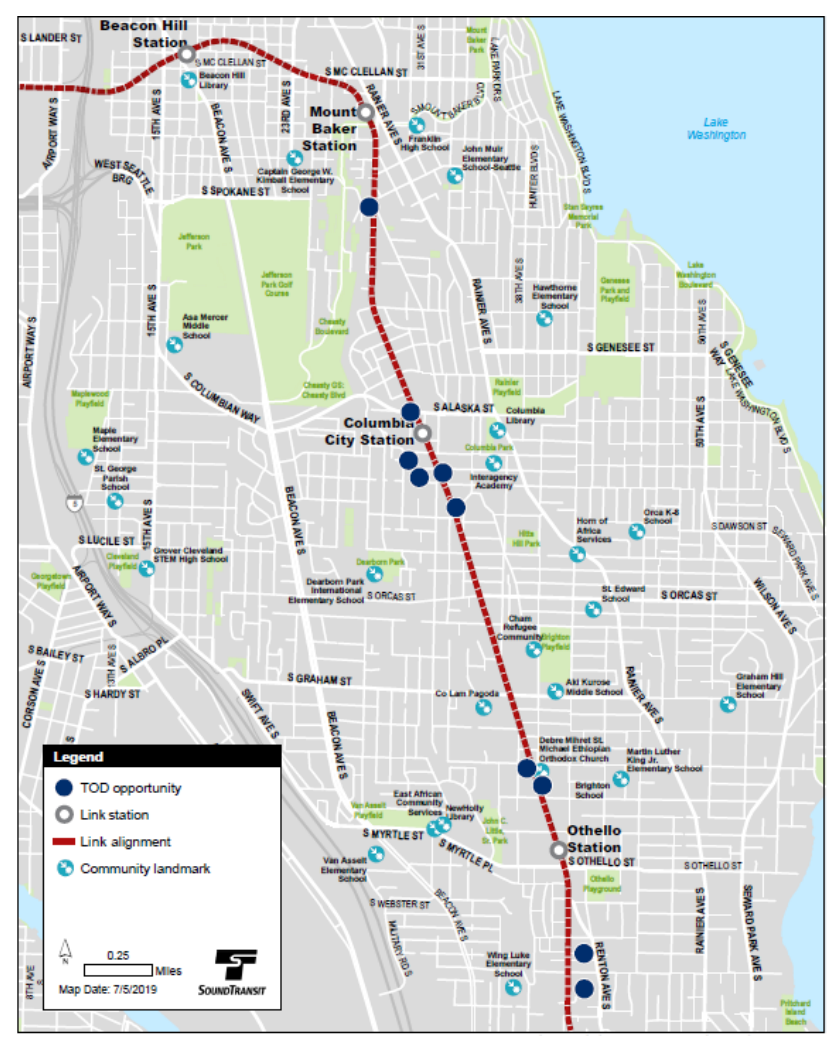 Sound Transit is planning to surplus 10 properties for equitable TOD in the Rainier Valley at no cost to the City of Seattle, pending full board approval later this month. Under the terms of ownership transfer, Seattle will be required to have the properties developed with 100% affordable housing for households at or below 80% of the area median income level. The housing units can be rented or sold, but the affordability requirement will have to run with the land for at least 50 years.