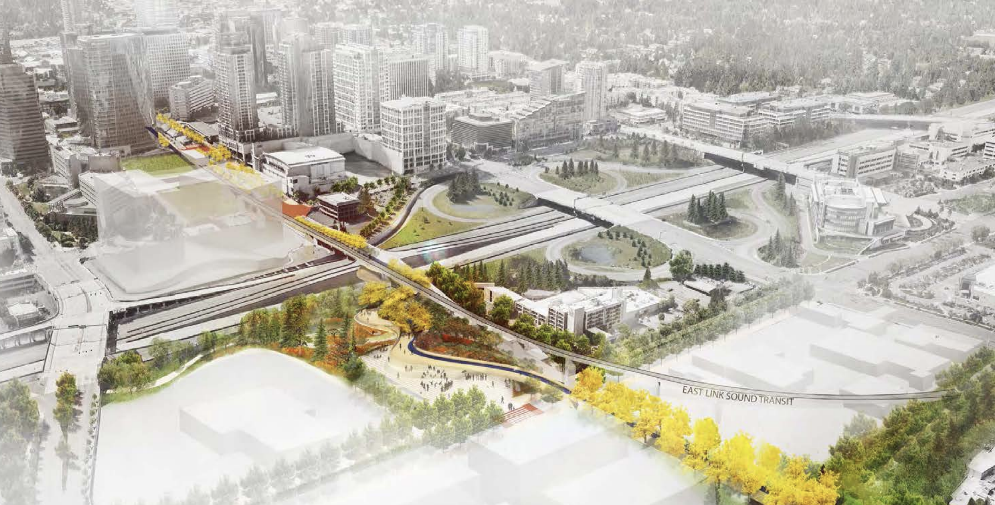 - Making refinements to the design of the Wilburton Station plaza so that there can be a direct Eastrail Trail stairway connection.