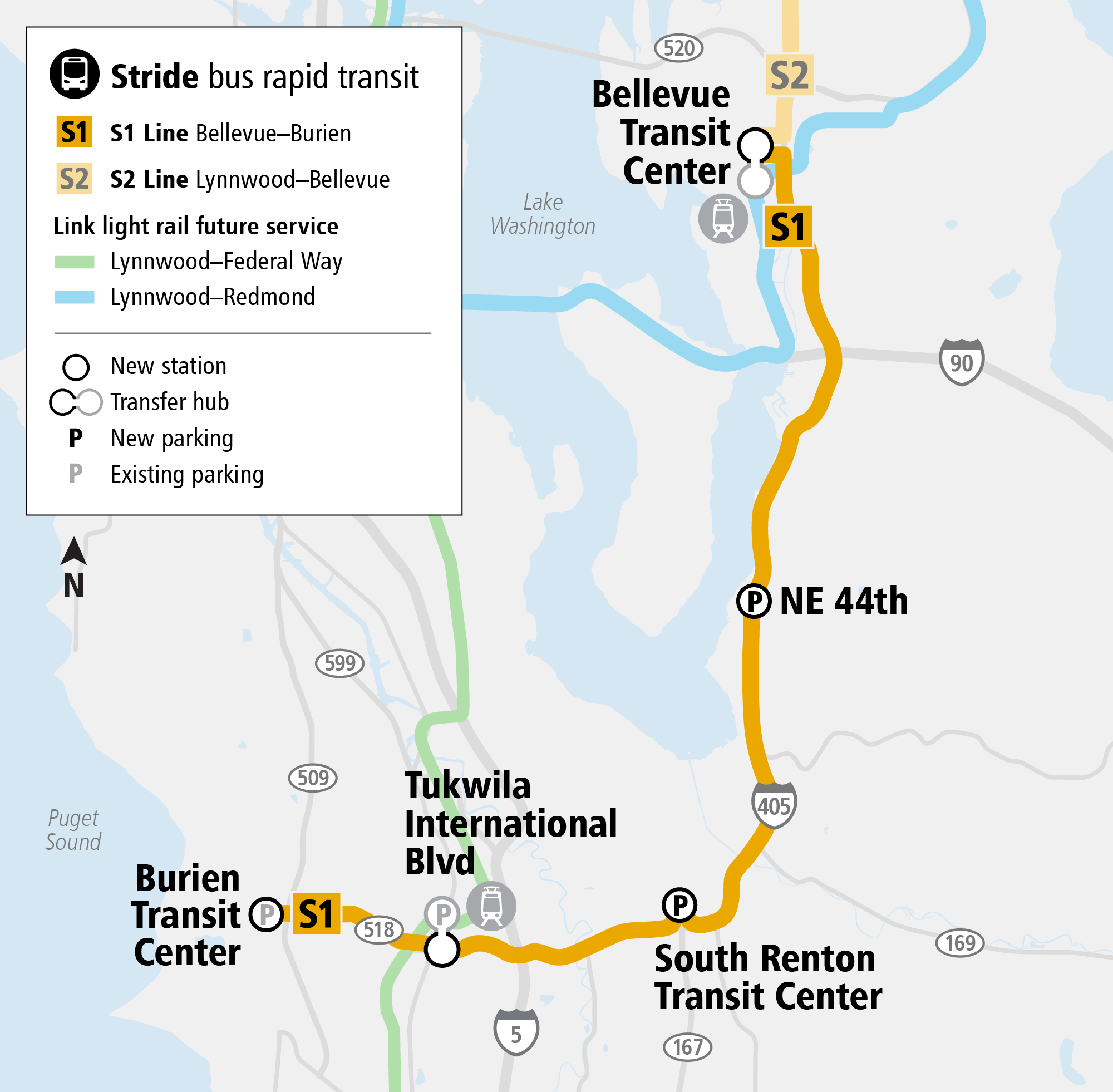 Sound Transit has been awarded a $68.9 million dollar grant by the US Department of Transportation (USDOT) to fund completion of two planned stations in Tukwila and Renton as part of its I-405 Stride bus rapid transit (BRT) project. The funds were awarded under the Neighborhood Access and Equity program, part of USDOT’s broader Reconnecting Communities and Neighborhoods program.