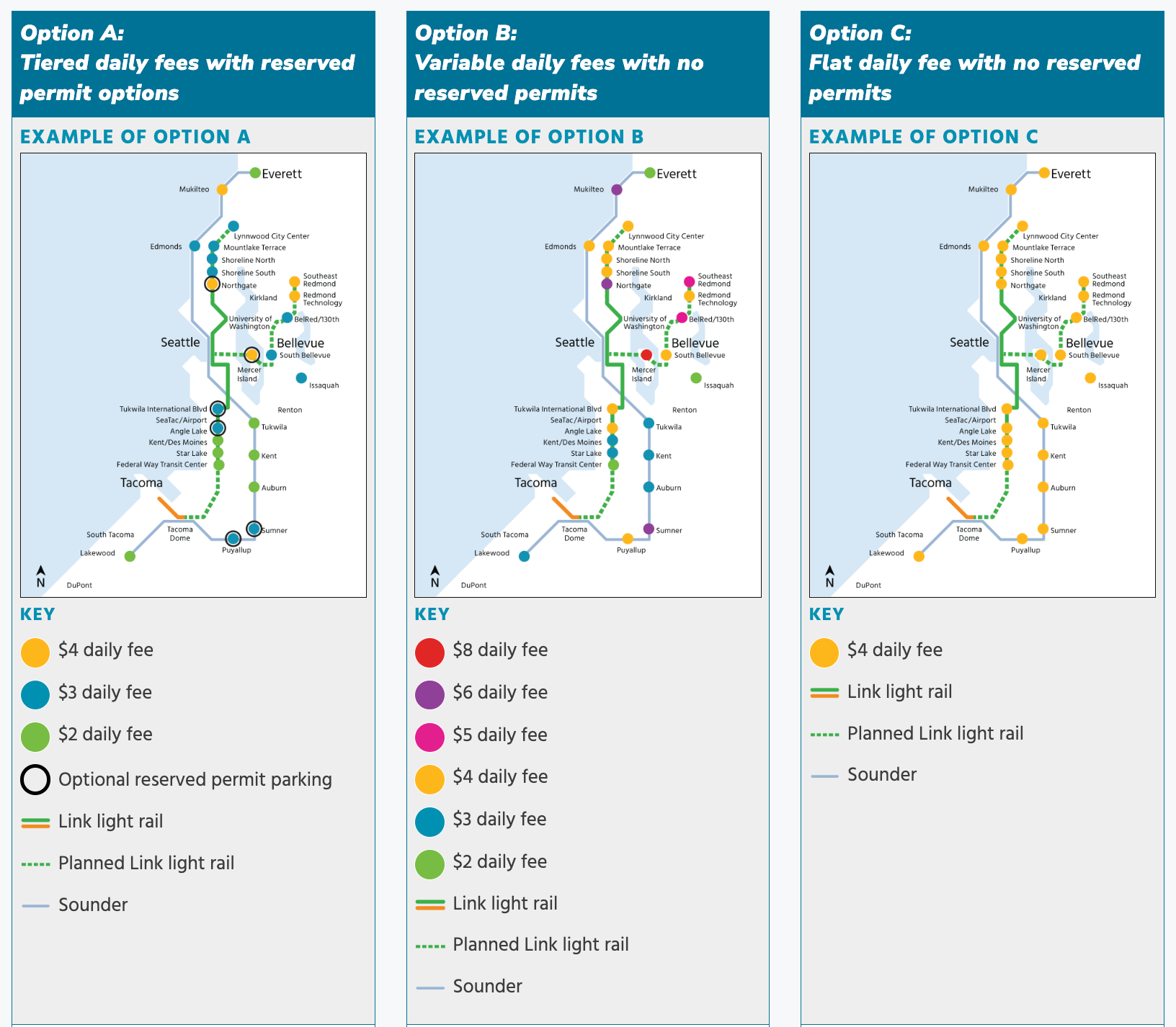 “Because Link parking facilities would be eligible for both daily fees and reserved parking, we will test passenger interest in reserved parking options,” Alex Krieg, Sound Transit’s station access planner, told the agency’s Executive Committee on Thursday. In time though, rates and reserved permit parking could change.