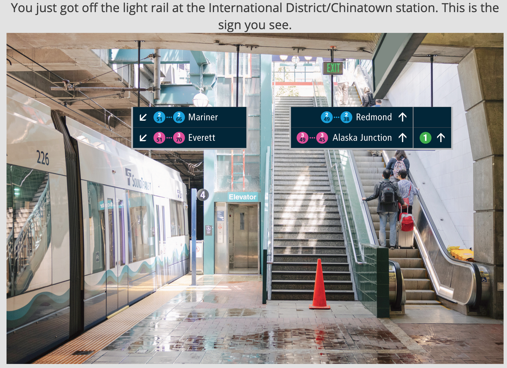Legally, Sound Transit is required to use some form of alternative station identification. RCW 81.112.190 explicitly states that the agency “shall incorporate in plans for stations along any light-rail facility signing that is easily understood by the traveling public, including, but not limited to, persons with disabilities, non-English-speaking persons, and visitors from other nations” and that “signage must also use distinguishing symbols or pictograms developed by the authority as a means to identify stations and may identify points of interest along the corridor for persons who use languages that are not Roman-alphabet based.” That latter language suggests that a numbering system could meet the law without pictograms.