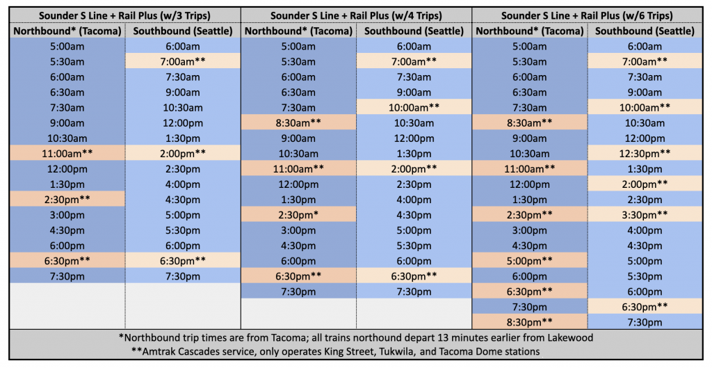 Sound Transit already has a $1 billion Sounder S Line capacity investment program that is planned to be rolled out in parts over the next three decades, but it’s already completely out of date with pre-pandemic assumptions. The formal plan was adopted right at the height of the pandemic in April 2020. It doesn’t account for the new paradigm. It instead calls for additional coaches on trains, expanding platforms, and more car parking — things we don’t need. It also remains focused on allocating any additional Sounder trips to commute hours of white collar workers working 8am to 5pm.