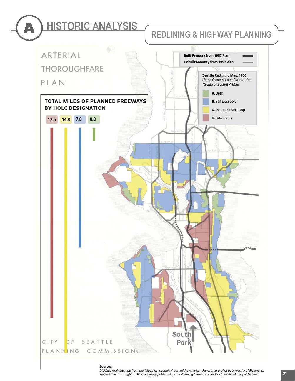 Across the country, infrastructure planning and construction was underway through the Federal Highway Act of 1956, legislation from a generation of policymakers who were predominantly White men. SR 99 was initially a federal highway — US-99. Plans for it cut diagonally across South Park’s street grid without sidewalks.