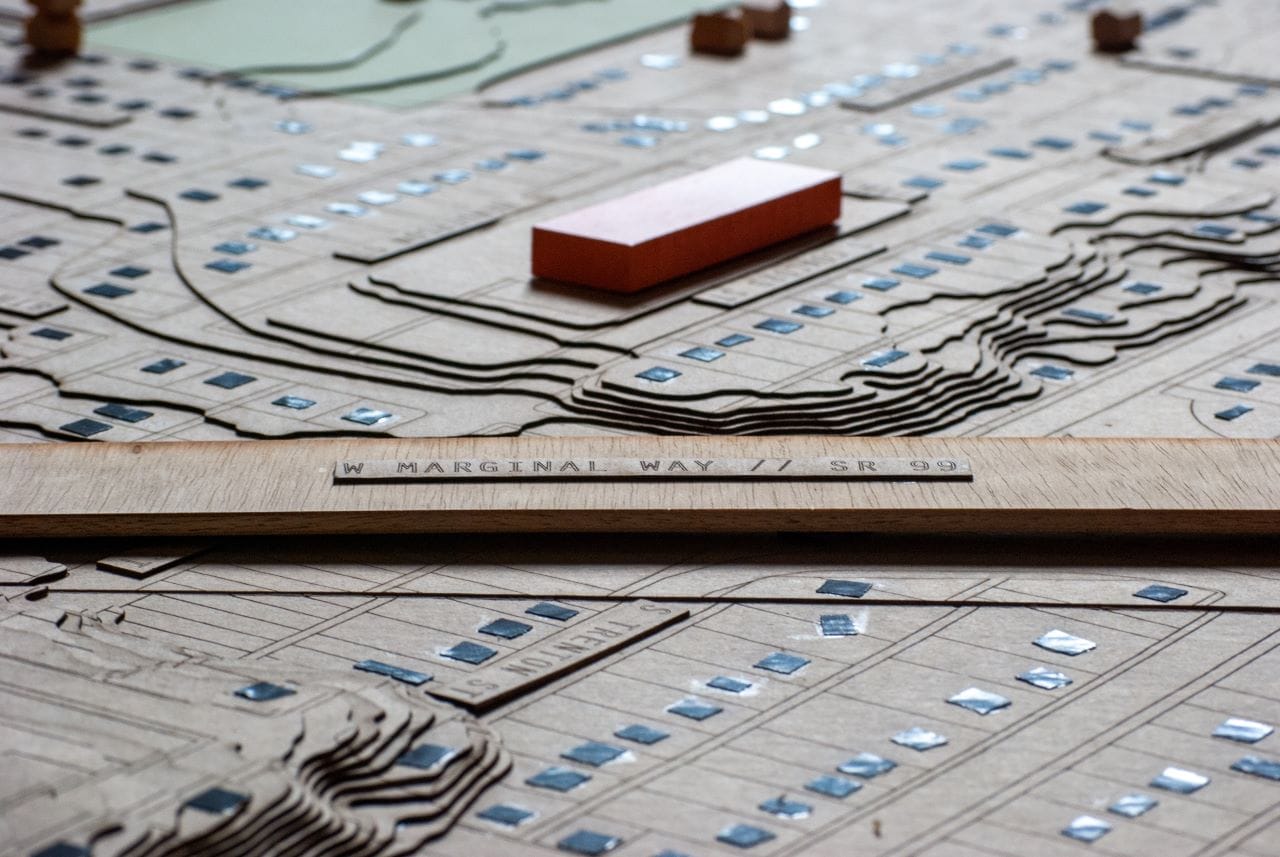 She pointed to their route on a wooden display of the western Duwamish Valley, a mapping tool designed by the University of Washington’s Department of Landscape Architecture. Twenty-two streets dead-ended into a plank that represents State Route 99. She lifted it to imagine what the future could look like.