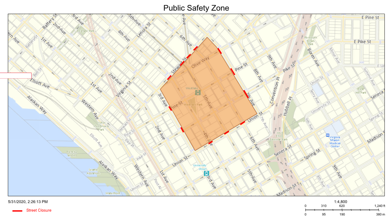 Initially, SPD had formed a cordon around Westlake Park to exclude the public from entering Seattle’s downtown core.