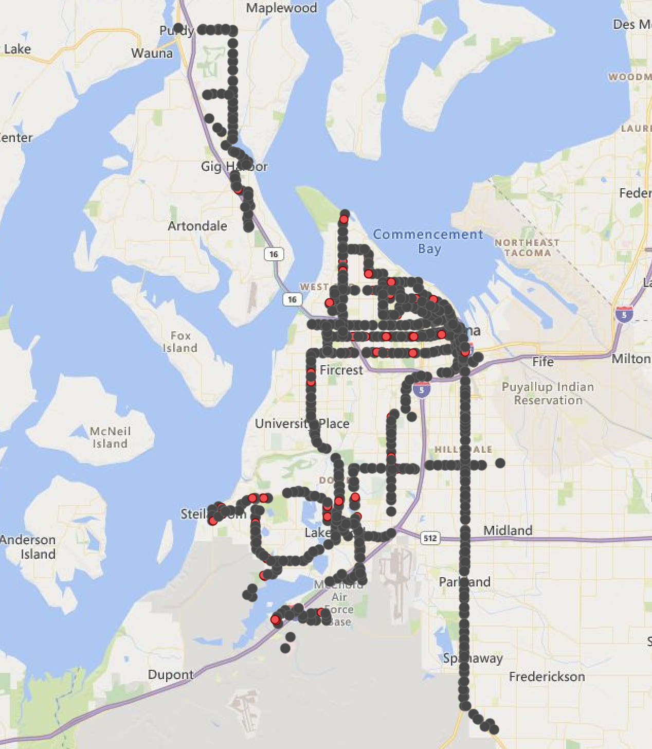 Bus stop balancing, as it is known, can be a politically fraught endeavor since it usually means adjusting stop spacing and removing bus stop locations to better balance them. A best practice is about one bus stop pair every four or five blocks for local service rather than every one or two blocks as is so often the case in America. Pierce Transit has a very high density of bus stops, often every two blocks or less.