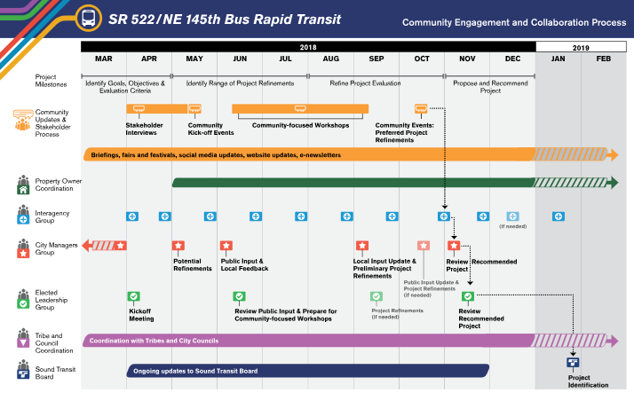 An open house on the project will be held tonight (May 31, 2018) from 6pm to 8pm at Brookside Elementary School in Lake Forest Park where the public can learn more about the proposal and process. Sound Transit staff will also be soliciting feedback on the concepts. Comment is being accepted online through an interactive map that allows pinned feedback. Over the course of this year, the project will progress through a thorough community engagement and planning process with final recommendation on the project due by the end of year.