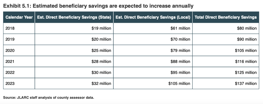 In 2018 alone, beneficiaries of MFTE (i.e., developers and landlords who opted into the program) saved $19 million in state taxes and $61 million in local taxes. Projections completed by JLARC estimate that by 2023, the amount beneficiaries receive could balloon to $32 million in state taxes and $105 million in local taxes.