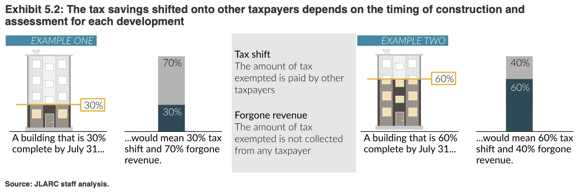 These lost tax dollars have to be made up by other revenue sources. JLARC found that whether developers’ tax savings were shifted to other taxpayers or were simply forgone as revenue depended on factors that were individual to each development. However, overall, the report found that “some of the impact—both [tax] shift and loss—happens outside the cities granting exemptions,” meaning that nearby communities that have not implemented MFTE policies may still end up losing revenue.
