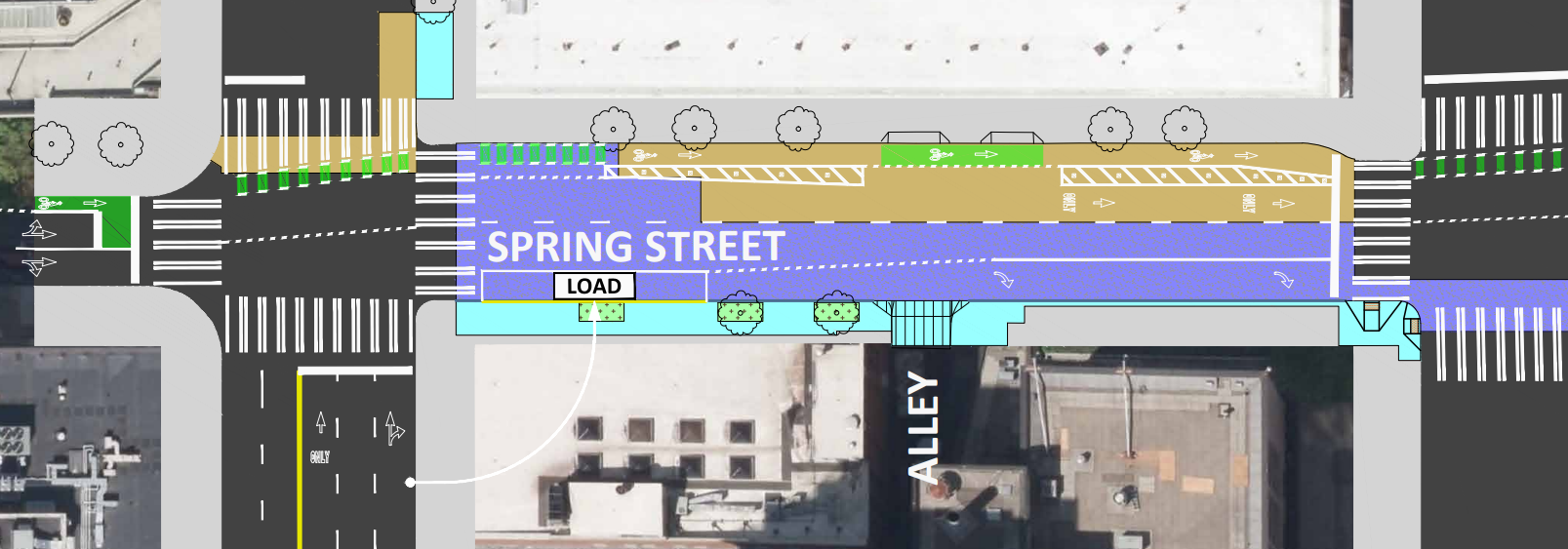 “The key transitions (E-W connections) are being considered and will be designed (not yet decided if Spring and/or Seneca Street),” the 2015 notes from the Office of the Waterfront’s presentation read.