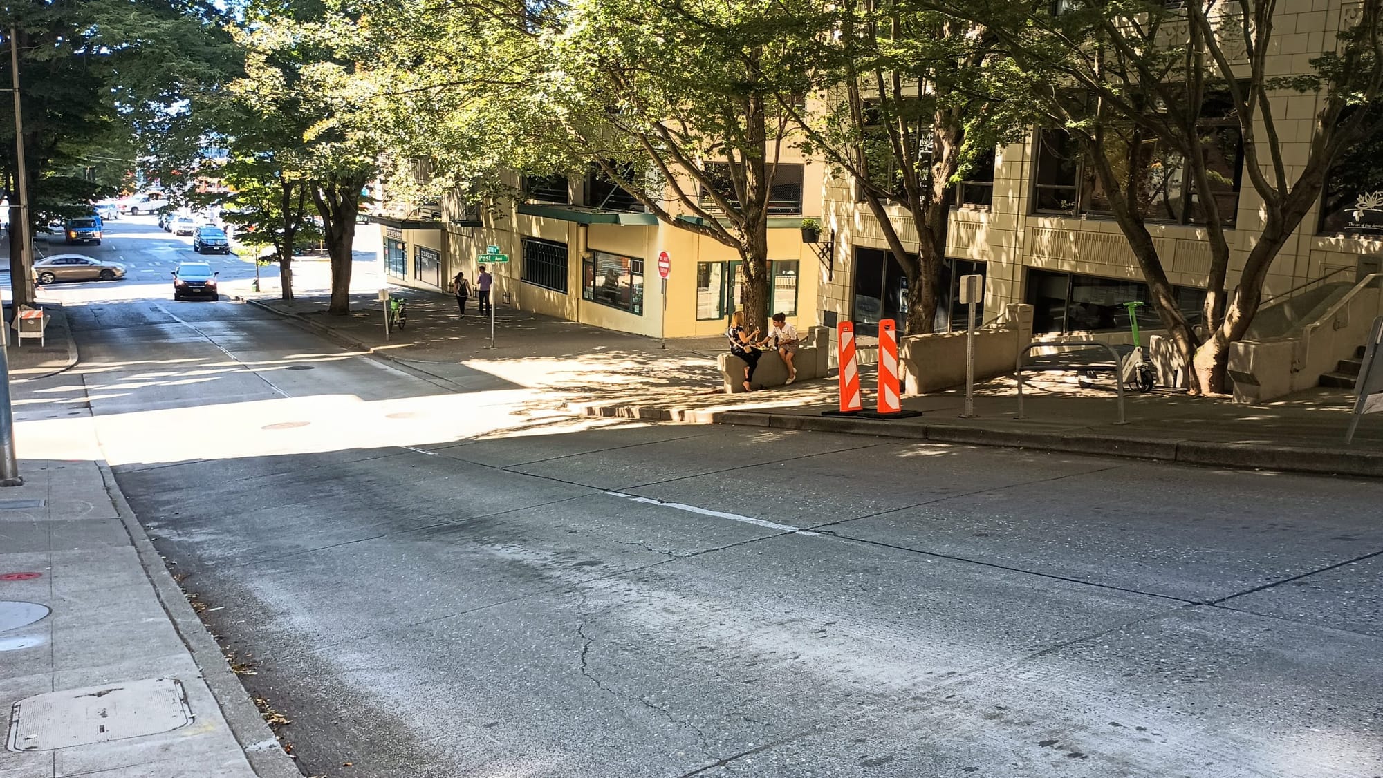 The big ticket item standing in the way of filling the funding gap is a new traffic signal at First Avenue and Yesler Way that SDOT says is required for a protected bike lane to be installed there. “We’d need a new traffic signal at Yesler Way & 1st Ave to allow a bike-only phase as well as creating a safer crossing at the diagonal intersection with James St. Building over areaways is complex too,” the department tweeted earlier this month in response to calls for filling the gap.