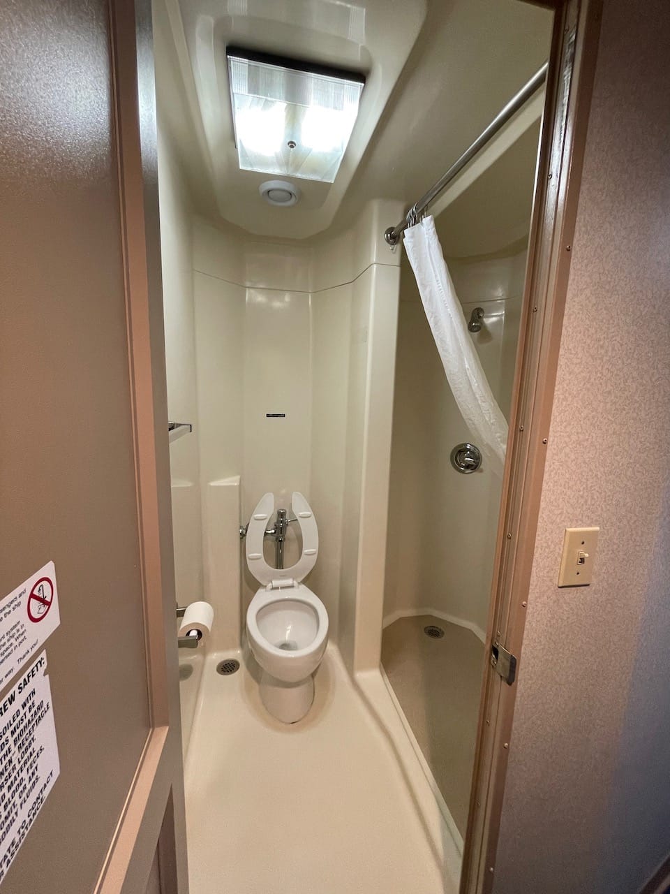 As it was me and two teens, we cannot get away with two-bed operation anymore, so we got a 4-bunk room. Also with two teens, we cannot escape the need to shower regularly, so there is fortunately an in-room bathroom. I don’t do well with small spaces, but there was nothing about this room that was claustrophobic. It wasn’t huge or opulent, but never felt tight and it had a great window to watch the world go by.