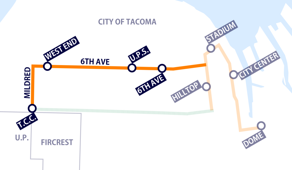 Since the publishing of my article Transit Trouble is Brewing in Tacoma in November 2022, the 6th Avenue proposal has garnered support. The option was presented to Tacoma’s West End Neighborhood Council, home to TCC, to positive reviews and additional presentations are to come.