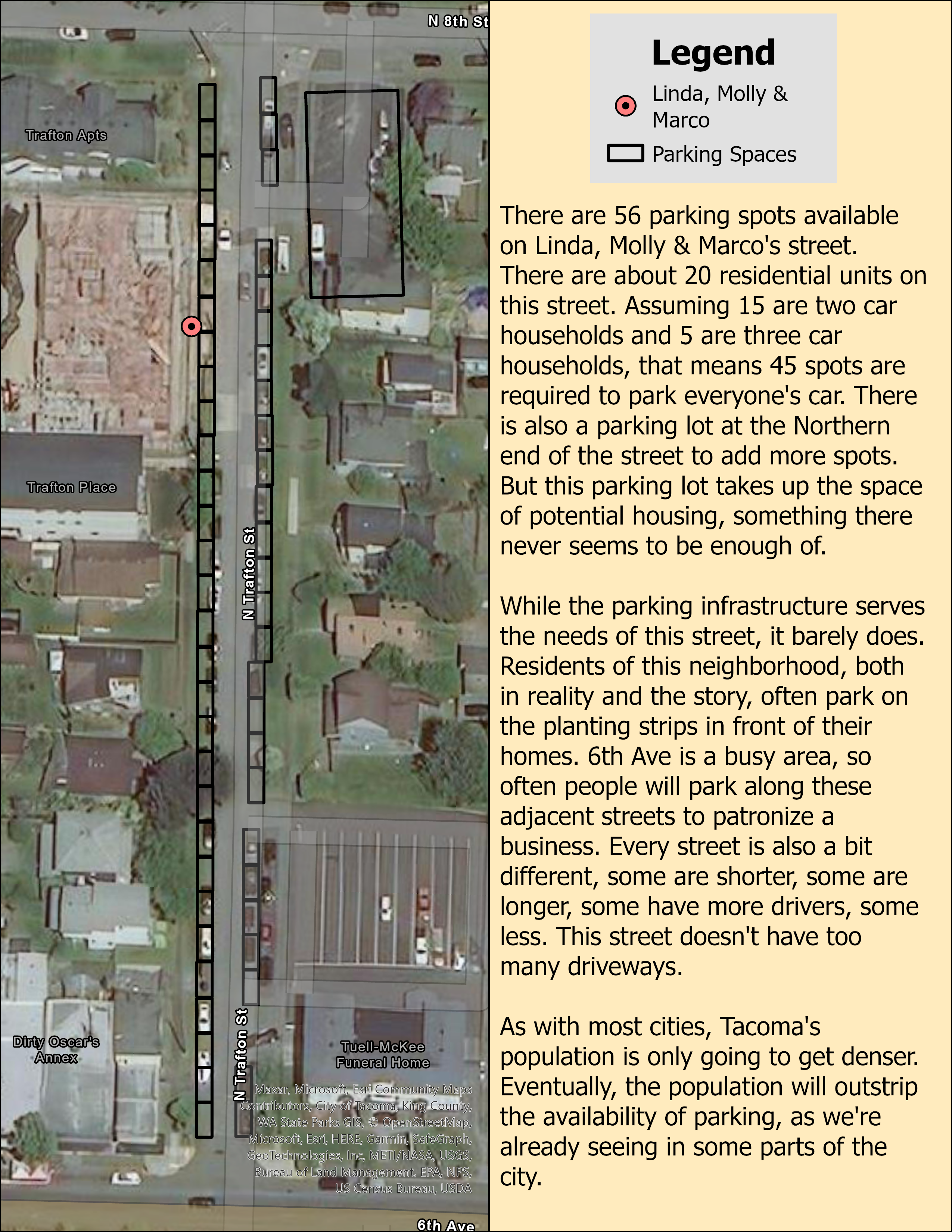 “An obstacle course. I hadn’t thought about it that way,” says Linda. “And here we are in this neighborhood upset that new developments aren’t accommodating more cars. Well, not me, but so many people in this neighborhood. Did I tell you I went to one of the meetings about making the area around University of Puget Sound a historic district?”