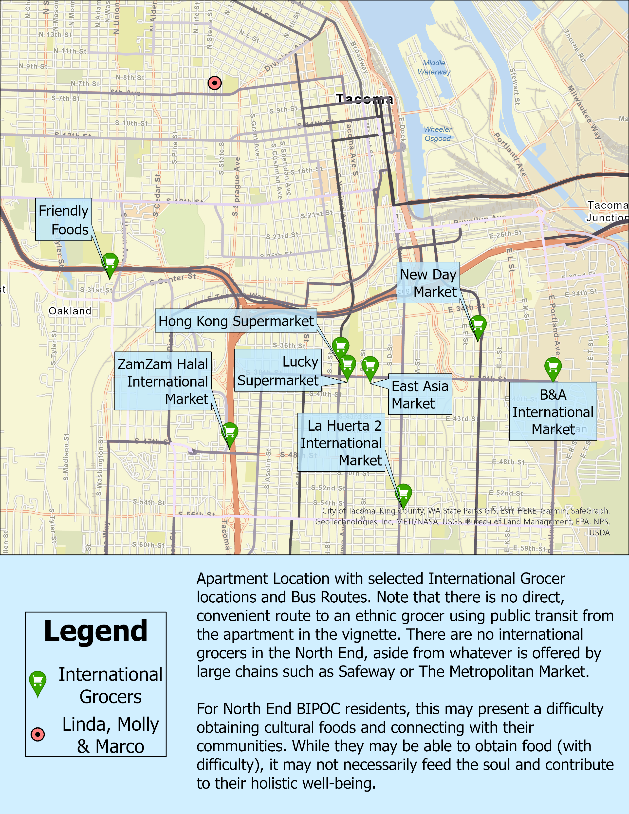 “Not yet. “Though I do have to figure out what to do for my mom’s visit. She’s coming out in two weeks and has all these plans to make me my favorite foods from growing up, but the nearest grocery stores that carry the ingredients we need are in South Tacoma. I couldn’t find any direct bus routes to any of those stores.”