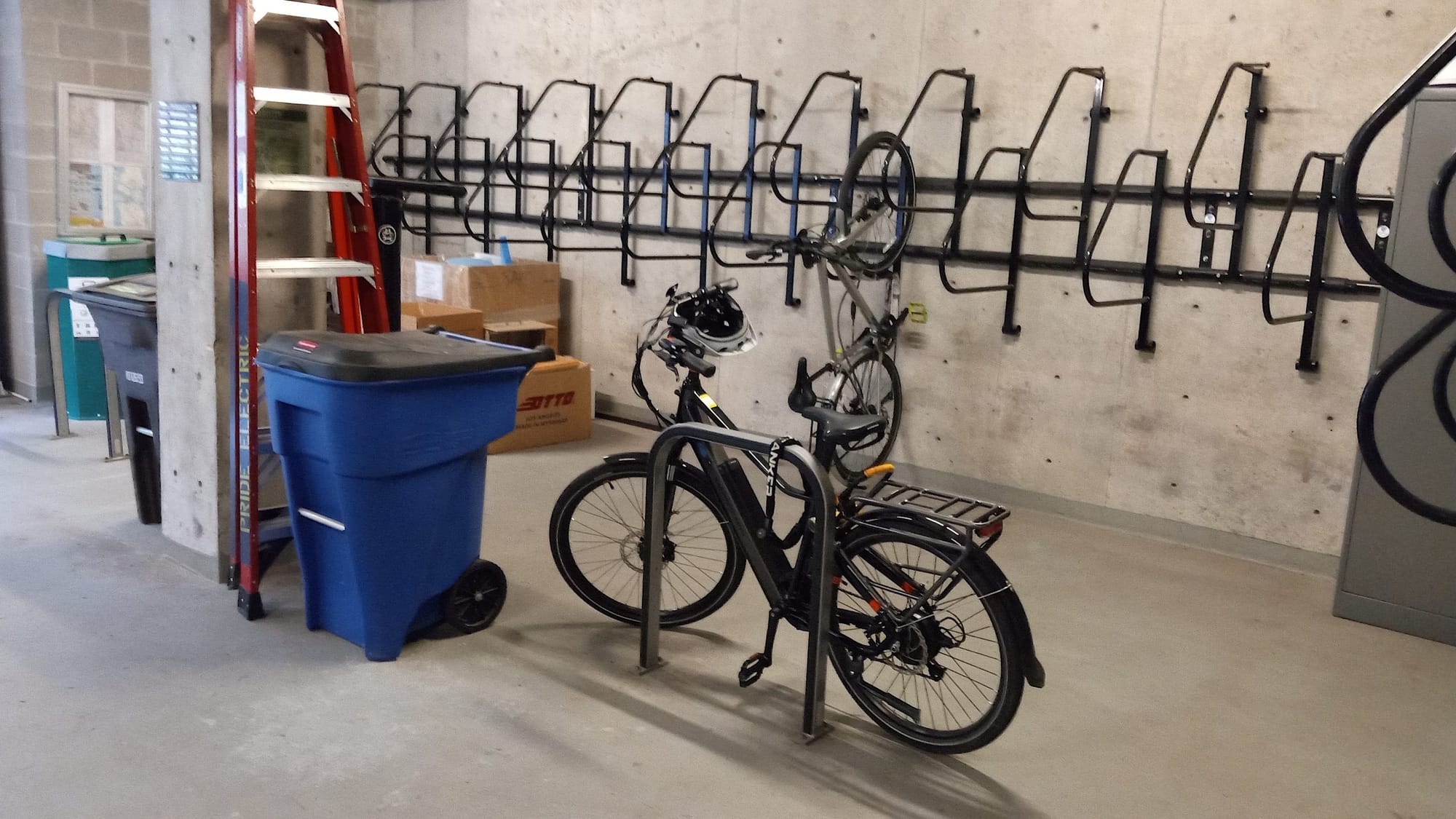During our tour of the building, we entered a small loading area in the basement with a few recycling bins and several bicycles. Sigler pointed out that the building has a walkability score of 99 out of 100 and was designed to be accessed by walking, cycling and transit. “I tell people you’re standing in an example of a 21st century parking garage,” she said. “They look around and chuckle because all they see are racks for bicycles – and that of course was very intentional.”