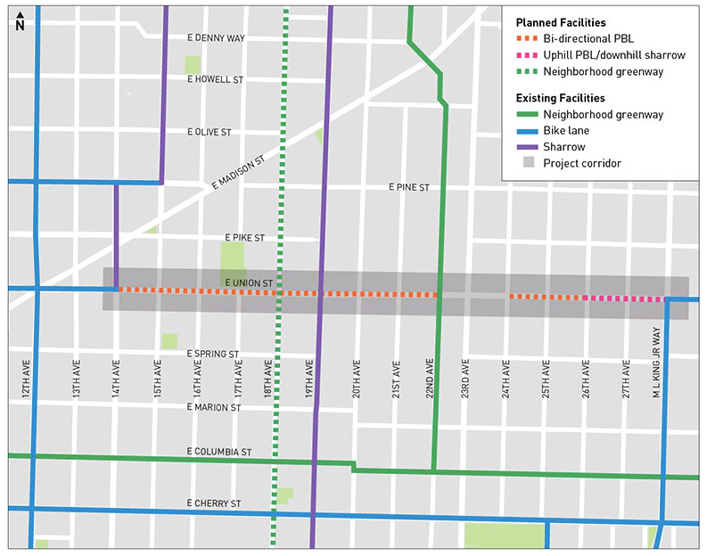 The city is moving forward with plans to build protected bike lanes on Pike and Pine that will connect Capitol Hill with Downtown, which will open up an important east-west corridor cyclists of all ages and abilities. Additionally, SDOT is moving forward with plans to construct another protected bike lane on East Union Street, and currently has an E Union St protected bike lane community survey posted online for people to complete until May 31st. The Seattle Department of Transportation (SDOT) project team will also be hosting a community meeting at 20/20 Cycle in the Central District on Saturday, May 18th, from 1 to 4pm.