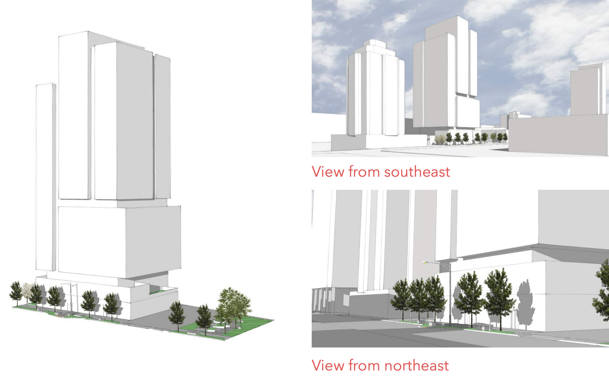 The preferred alternative starts with a basic zoning envelope and then manipulates it into what appears as two interlocking boxes. The form is more subdued or more elegant than the first proposal depending on your perspective. I think it is a nice simple place to begin and allows for a clear path to a clean, elegant building. Of course we will have to wait until the recommendation level to really see what the building will look like.