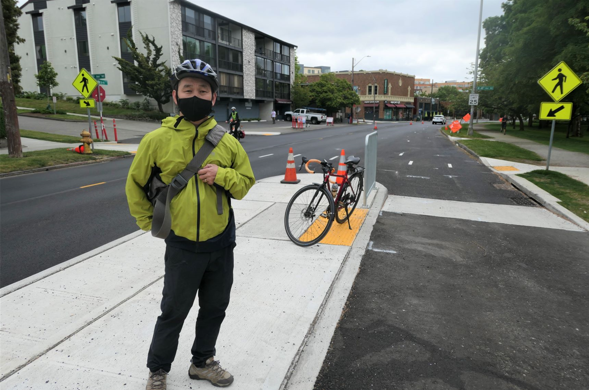 Cascade Bicycle Club highlighted Chang’s life story, his work to end traffic fatalities, and his efforts to engage with advocates in a feature earlier this year. Cascade’s Paul Tolmé noted bicycling helped Chang adapt to American life after immigrating from Busan, South Korea. “When Chang arrived with his family in Olympia as a child, he quickly tried to learn a few words of English so that he could talk to a neighborhood boy who owned a bike. ‘I made an instant new friend,’ Chang says. ‘We made ramps with plywood and cinder blocks and took turns jumping and crashing.'”