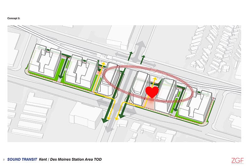 Two surplus lots are up for redevelopment at the future Kent/Des Moines Station. Sound Transit has about four acres of land that it wants to infill with transit-oriented development (TOD), but how that will happen is still up for a debate. The agency is sharing some development concepts and seeking additional feedback on development priorities in a second outreach phase.
