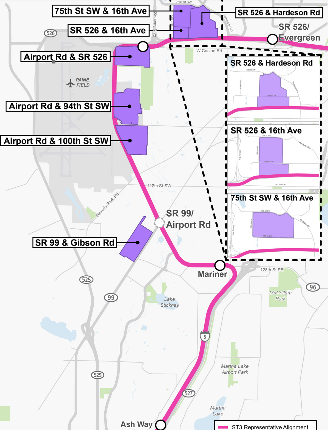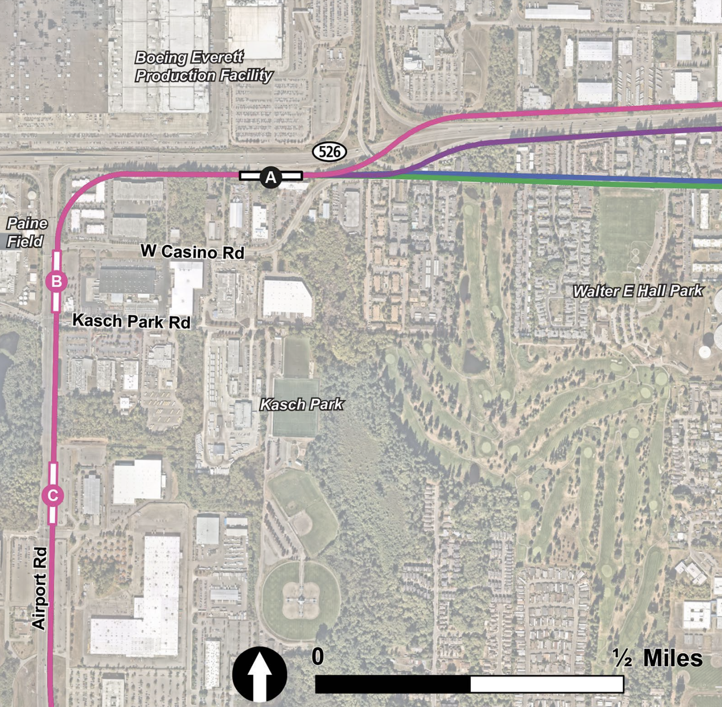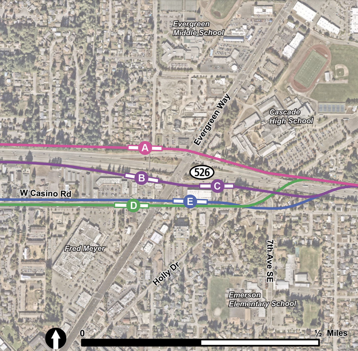 - At SR 526/Evergreen, most commenters supported the EGN-A and EGN-B options. Both options are fairly lackluster though EGN-B has better ridership and transit-oriented development potential. The real winner is EGN-D for ridership, bus connections, and transit-oriented development.