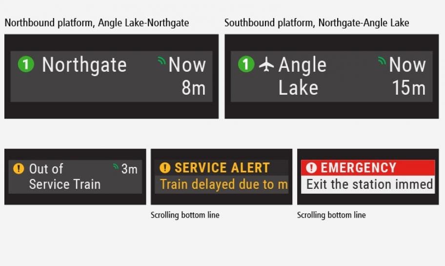 Riders keep asking when Link’s real-time arrival sign system will be reactivated. The timing, according to Sound Transit, is still murky. Reached by email, Sound Transit spokesperson John Gallagher said in a statement: “We’re still expecting to begin installation of new signs in the [fourth quarter of the year]. We should have a clearer sense of timing later next month or early October.” Some stations, including ones in Downtown Seattle, will be outfitted with new digital arrival signs. Sound Transit plans to roll out a new digital cross-platform Passenger Information Management System, which will power the signs with information and real-time arrival data. Fine tuning this system will be critical to turning back on the signs.