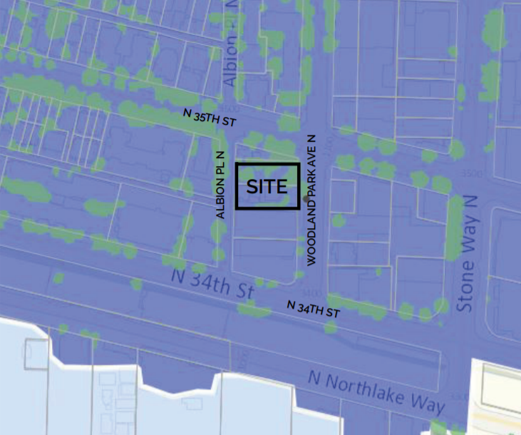 The first project is geared toward more of a luxury market and planning 87 underground parking spots–and by the way the developer is seeking a code departure to put the garage bay on Stone Way rather than N 42nd St (the side street), which the developer argues is too steep and has poor sight lines. The developer aims to hit 134,651 gross square feet and will have a MHA requirement of 6% (five units) or $13.75 per square foot (for in lieu payment of about $1.85 million). They aren’t broadcasting this MHA participation in their design packet, but their floor area ratio (FAR) of 3.75 (existing zoning allowed only 3.0) gives them away.