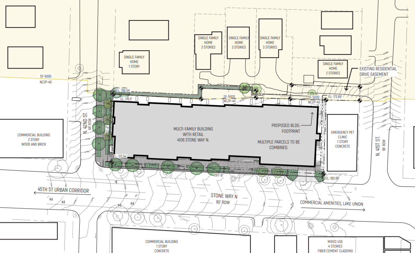 It appears the City is poised to support the code departure to build the Stone Way curb cut and access to 87-car garage. Both the Seattle Department of Construction and Inspections (SDCI) and the Seattle Department of Transportation (SDOT) offered letters in support of the scheme, which the developer included in the design packet.